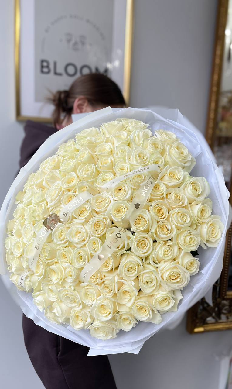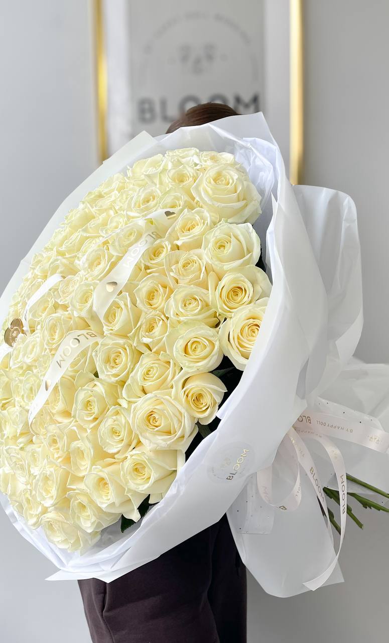 Розкішний монобукет зі 101 кремової троянди — символ чистоти, відданості та безмежних почуттів 🤍