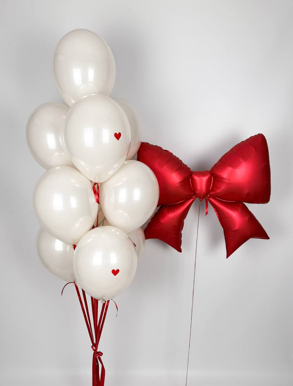 Стильна та елегантна повітряна композиція “Love Bow” у білому та червоному кольорах — ідеальний вибір для зізнання в коханні, романтичного сюрпризу чи особливої події. Фонтан з білих кульок із маленькими червоними сердечками виглядає ніжно та лаконічно, а велика фольгована червона стрічка-бантик додає образу яскравого акценту й ефектності. Мінімалізм, стиль і почуття в кожній деталі ❤️✨