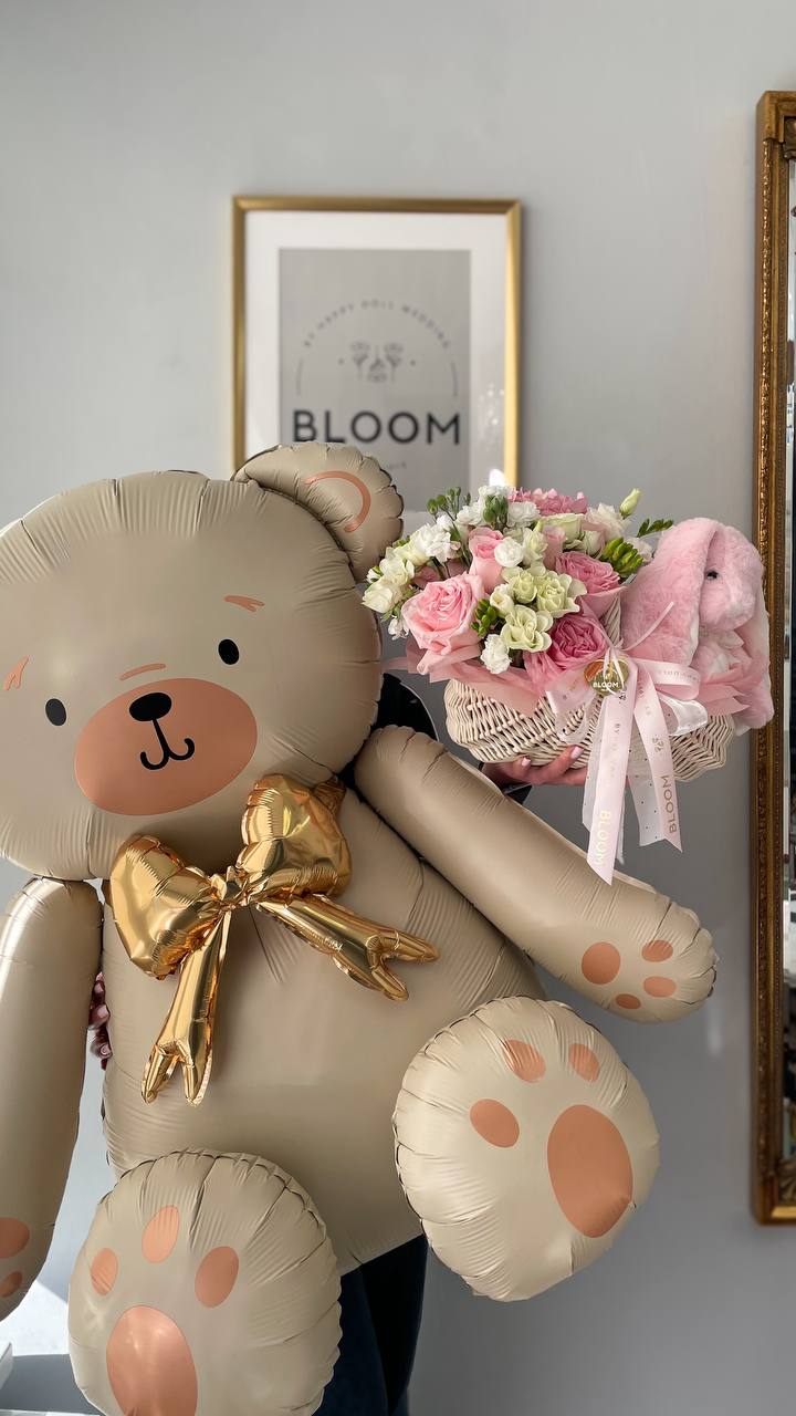 Милий та ефектний повітряний ведмедик — ідеальний подарунок для будь-якого приводу. Велика фольгована кулька у формі ведмедика з золотим бантом виглядає ніжно та святково, додаючи емоцій і тепла кожному моменту. Чудово підходить як самостійний сюрприз або як доповнення до квітів, подарункових боксів чи святкової композиції. Такий подарунок точно викличе усмішку та залишить приємні спогади 🧸✨
