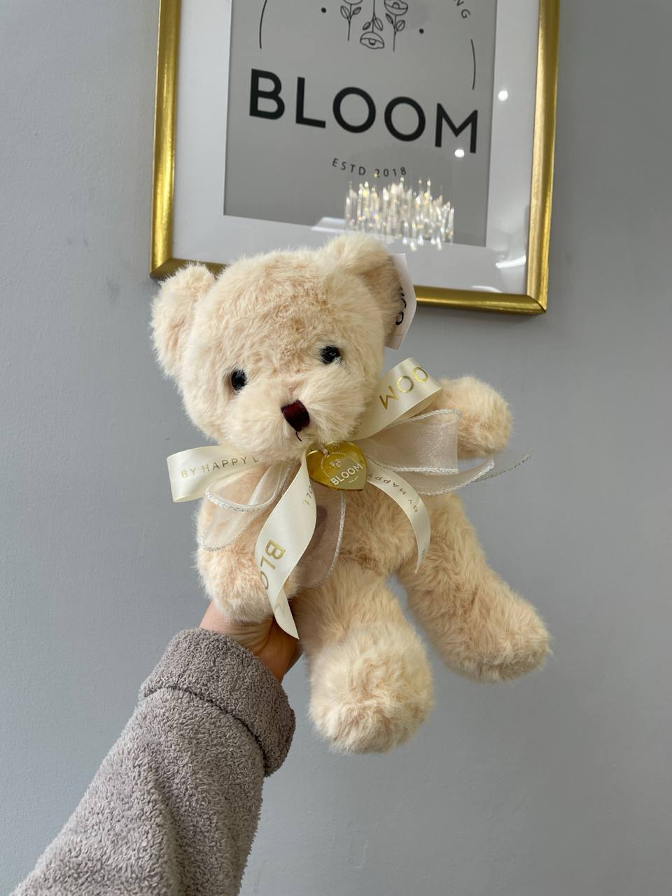 М’який плюшевий ведмедик у молочной стрічці Bloom. Ніжний на дотик, теплий по відчуттях — ідеальний маленький акцент до букета чи композиції. Подарунок, який передає турботу й обіймає без слів 🤍