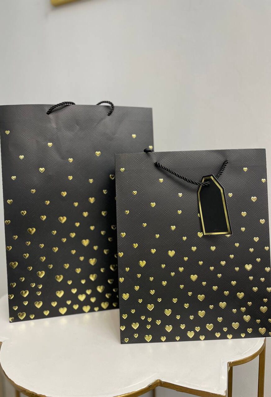 Паперовий подарунковий пакет «Black Gold Hearts»