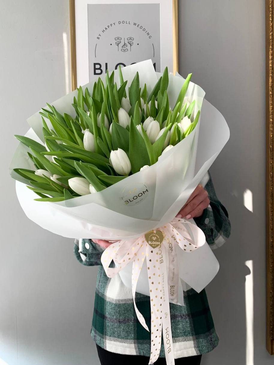 Розкішний букет як чиста елегантність із 51 білого тюльпана — символ чистоти, щирості та нових починань 🤍